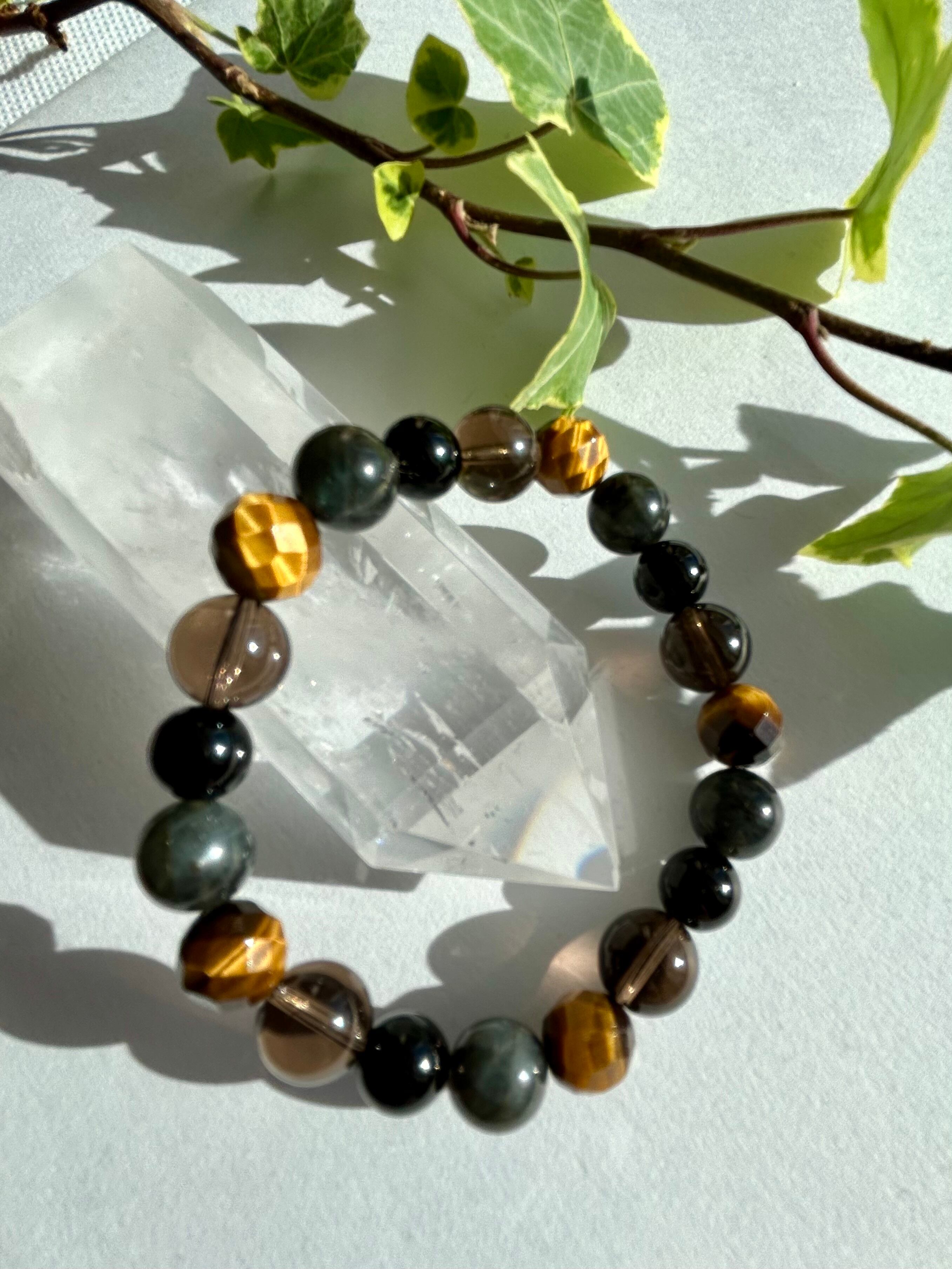 ゴールデンタイガーアイ、ブラックラブラドライト、スモーキークォーツ、モリオン