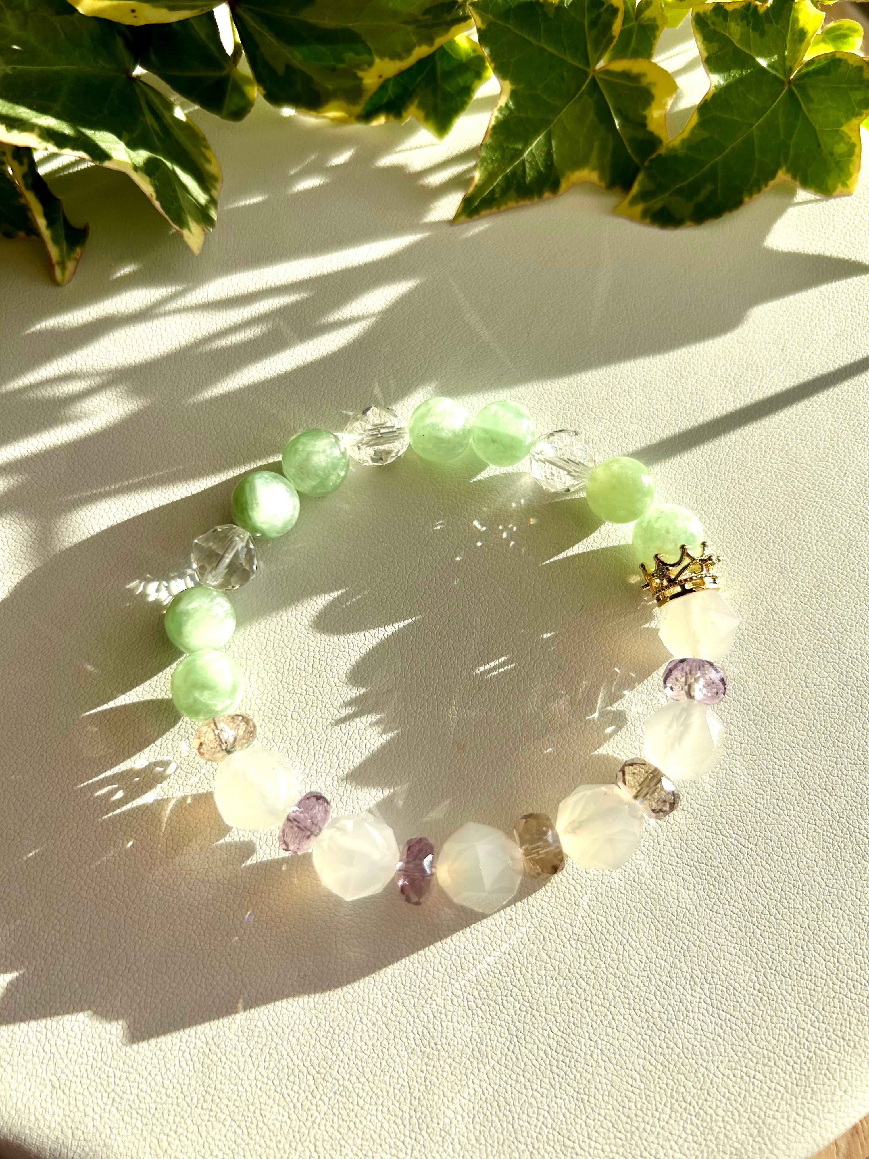 アメトリンは、心の平和と精神的なバランス整える効果があります。 アメジストの落ち着いたエネルギーとシトリンの活性化する力が組み合わさることで、調和と心の安定をもたらします。 ストレスや不安を感じる時にこの石を身につけることで、心の平穏を取り戻すことができるでしょう。