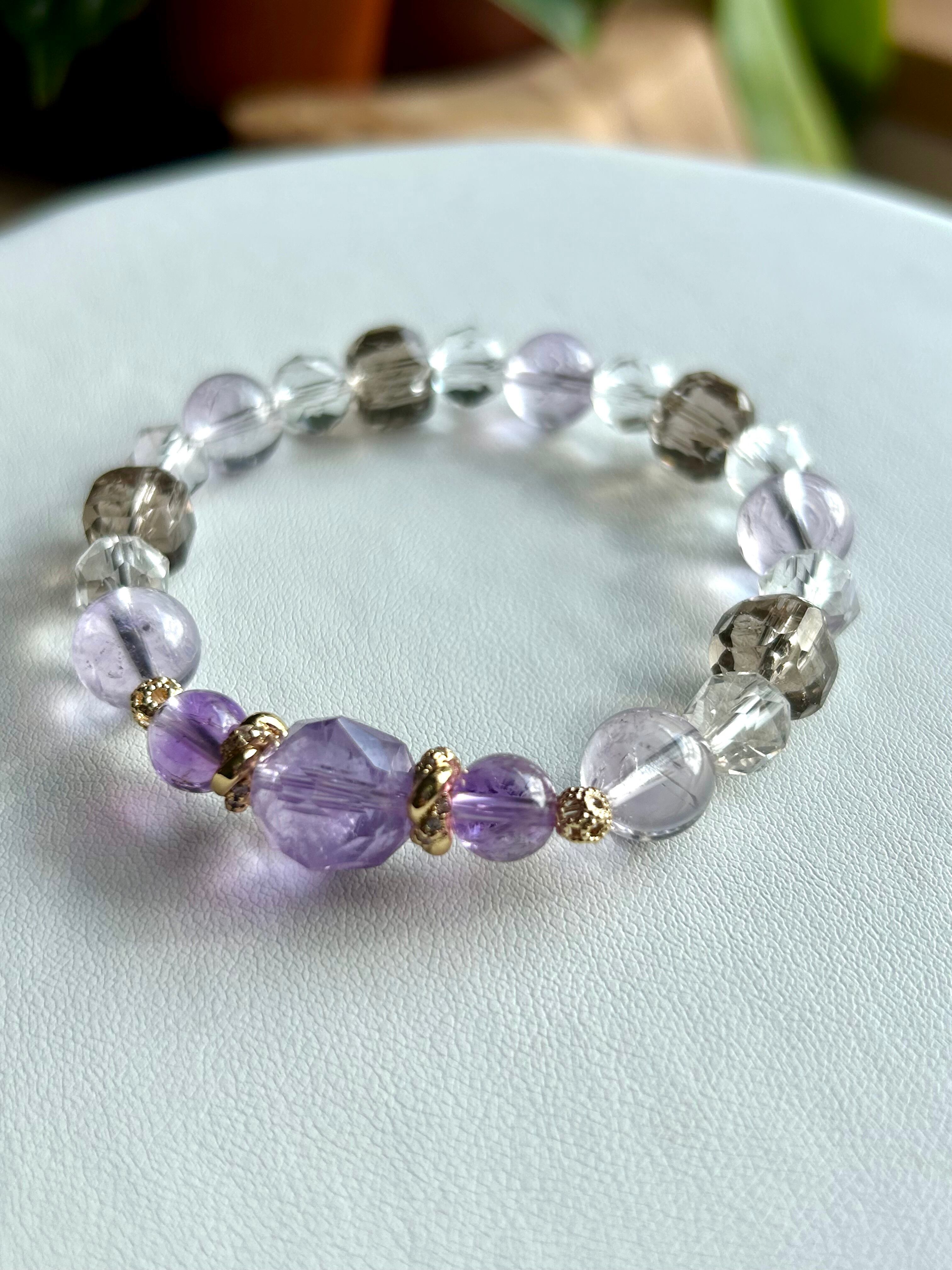 天然石パワーストーンブレスレット アメジスト、エレスチャルアメジスト、ピンクアメジスト、水晶、スモーキークォーツ